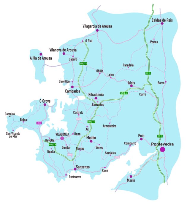 Nuestras rutas abarcan todo el valle del Salnés, si necesitas que te sirvamos mercancía en tu casa o en tu negocio ponte en contacto con nosotros.